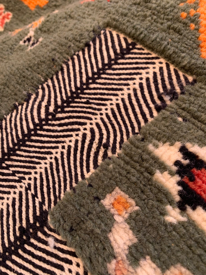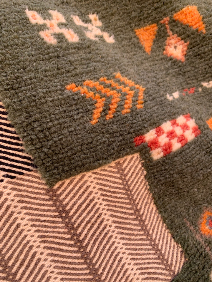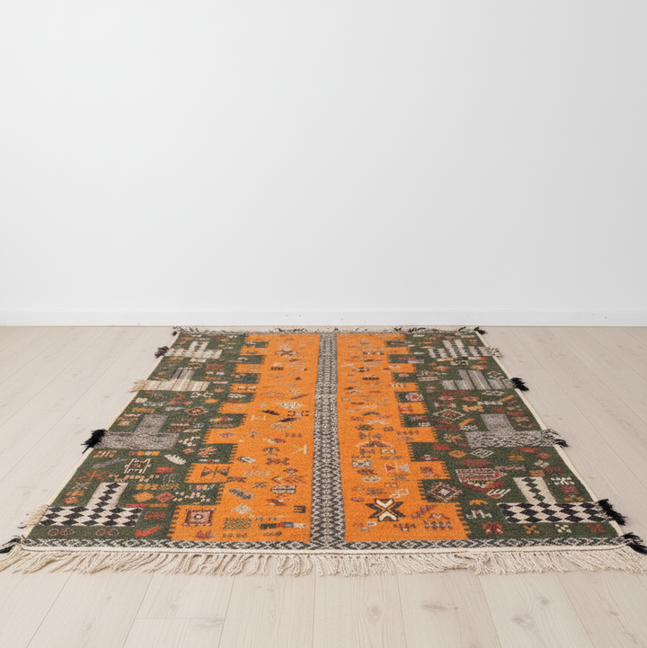 Add a bold pop of color and character to your home with this truly one-of-a-kind Moroccan rug 🧡💚. Handwoven in Taznakht, Morocco from 100% natural wool, it blends vibrant green and warm orange tones in a stunning, artistic harmony. There isn’t another rug like this in the world, making it a truly unique statement piece.