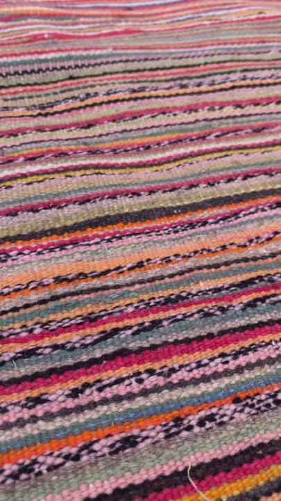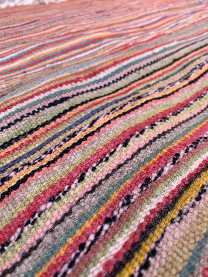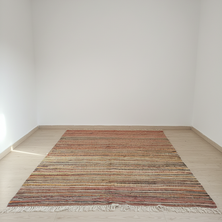 Bring color, energy, and modern Moroccan craftsmanship into your home with this vibrant flat-weave rug. Handwoven in Taznakht from 100% natural wool, this piece features playful multicolored lines that instantly brighten any room. Its sleek flat-weave design makes it lightweight, easy to style, and perfect for everyday living.