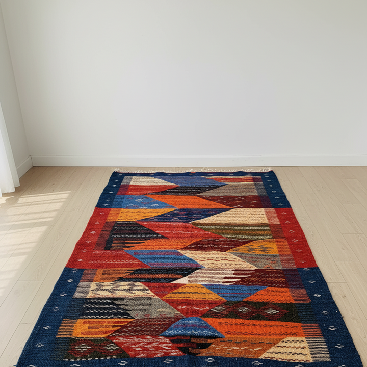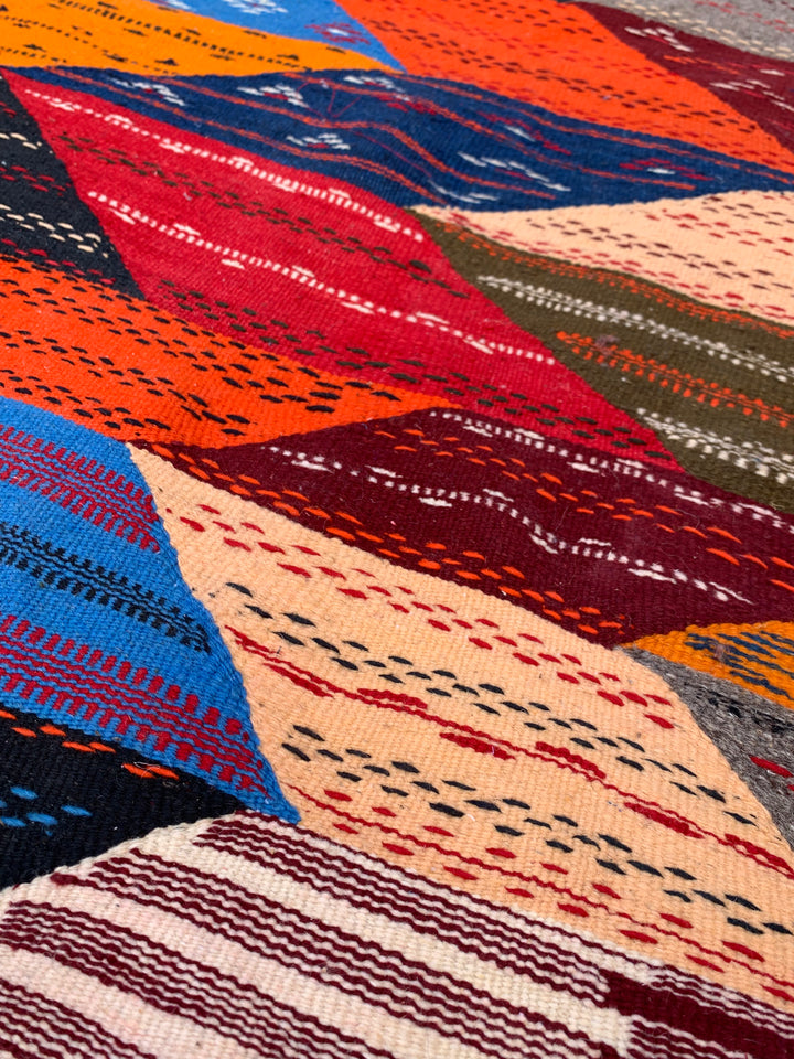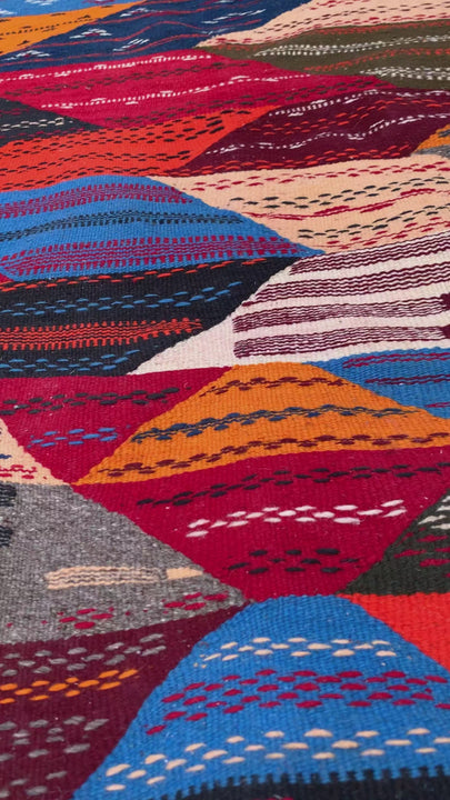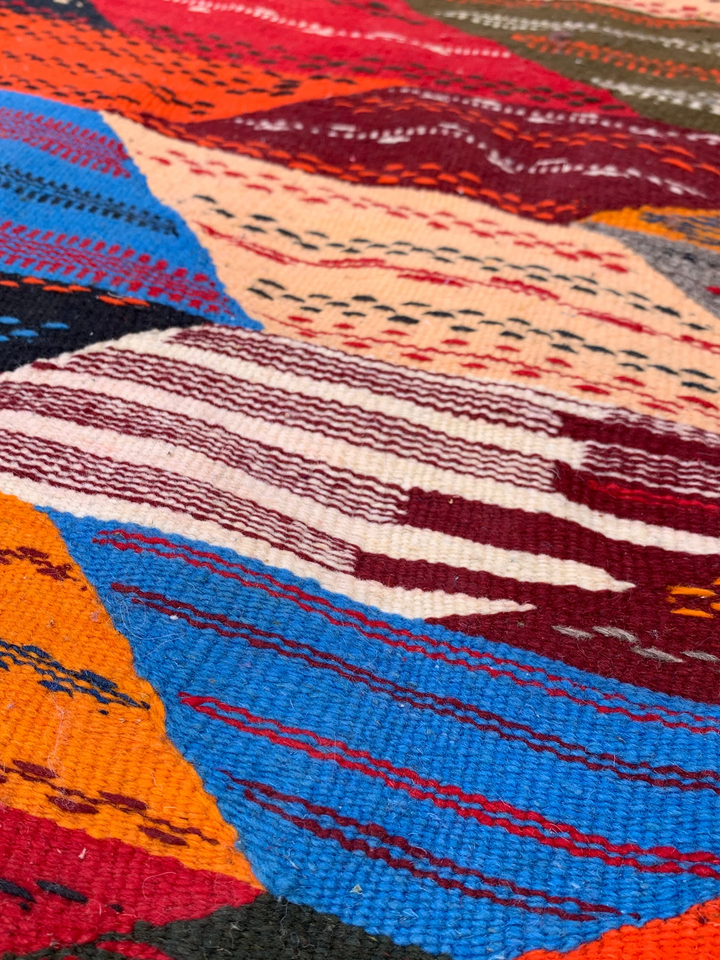 Bring art, color, and authentic Moroccan craftsmanship into your home with this stunning handwoven “Picasso” rug, crafted in Taznakht using 100% natural wool. Bursting with creativity and vibrant energy, this masterpiece is fully reversible and identical on both sides, giving you two looks in one and twice the charm.