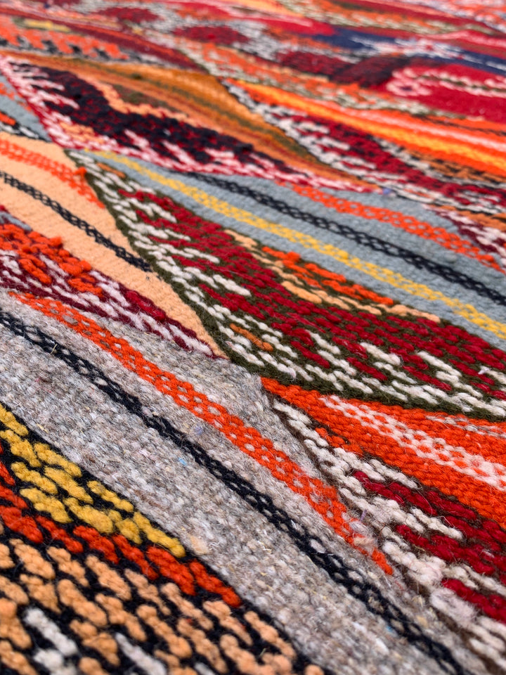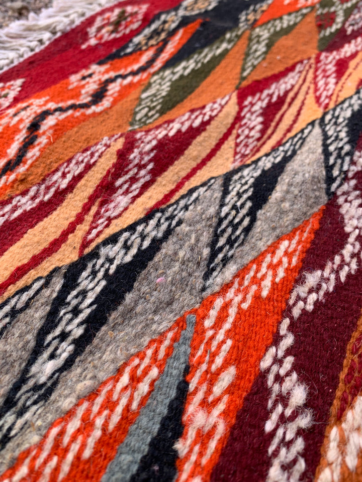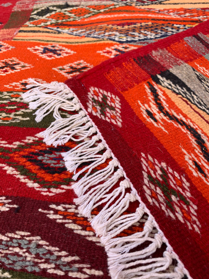 This stunning red Picasso rug is handwoven by skilled women artisans in Taznakht, Morocco, showcasing traditional Moroccan craftsmanship passed down through generations. Made from 100% natural wool, it brings softness, warmth, and authentic Moroccan style to your home.