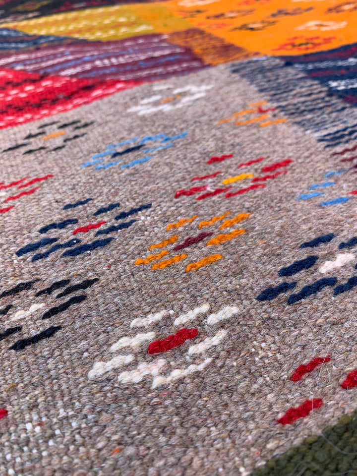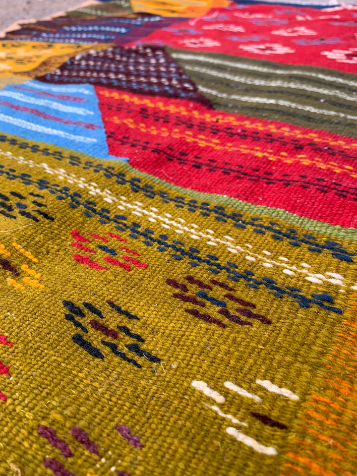 Handwoven by women artisans in Taznakht, Morocco, each piece is crafted from 100% natural wool, blending traditional Amazigh patterns with vibrant, modern colors.
